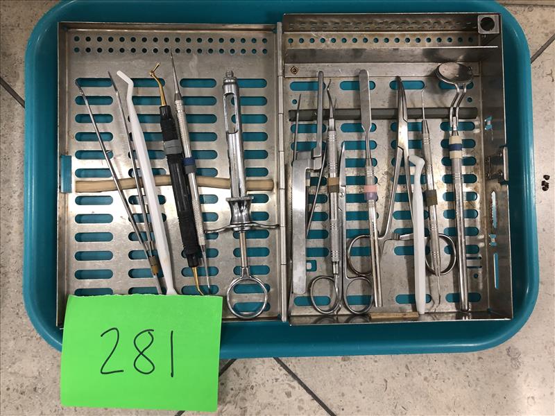 Set of dental operatory instruments in stainless instrument cassette case
