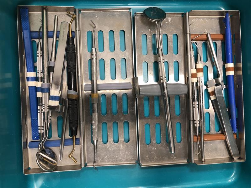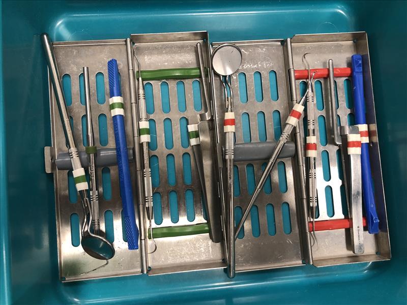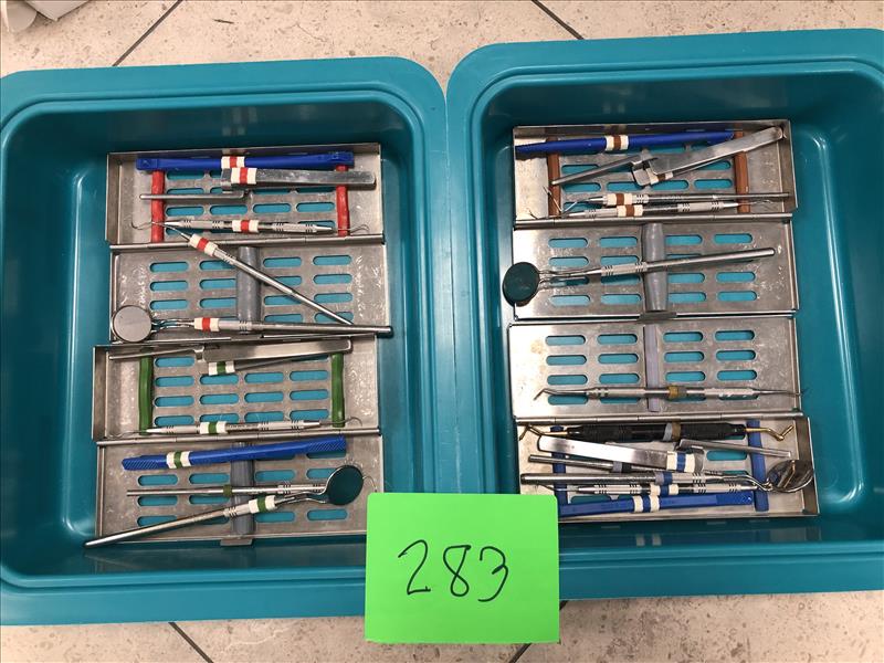 (4) Sets of dental instruments in Thompson Dental MFG mini stainless instrument cassette cases