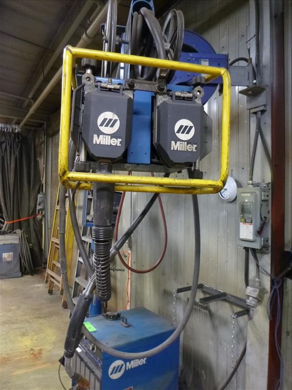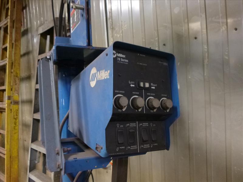 Miller boom welding system consisting of: Miller mig welder, mod. Dimension 302, ser. no. MA050233U c/w Miller wire feeder, mod. 70, ser. no. LF277227, Miller welding boom (located at 164 Rue Strathcona)