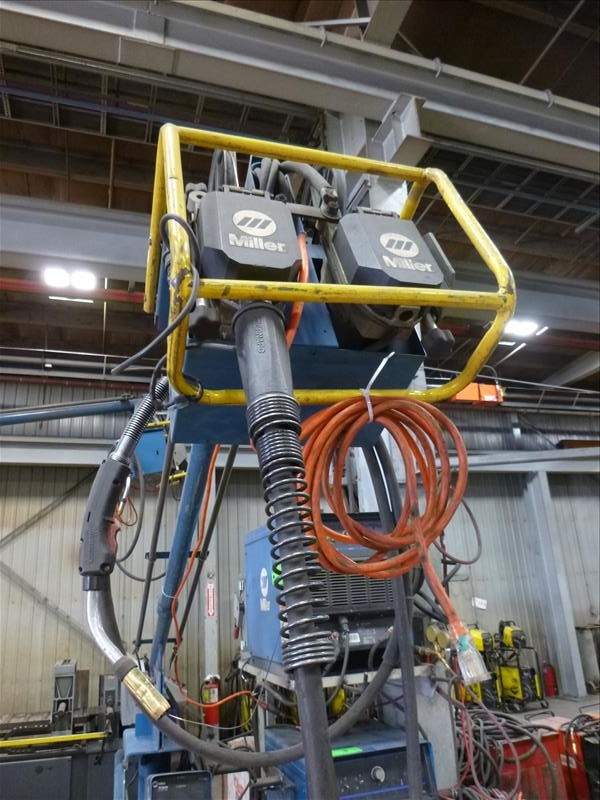 Miller boom welding system consisting of: Miller mig welder, mod. DeltaWeld 302, ser. no. KG204241 c/w Miller wire feeder, mod. 70, ser. no. LF277222, Miller welding boom (located at 164 Rue Strathcona)