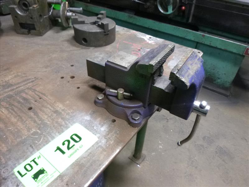 steel work bench, 35 in. x 96 in. c/w 5 in. vice (located at 164 Rue Strathcona)