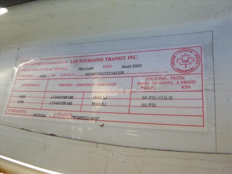 GMC cube van, mod. Savana, VIN 1GDHG31U731142339 (2003), unit no. 40-06, 10 ft. box c/w contents (located at 166 Rue Maltais)