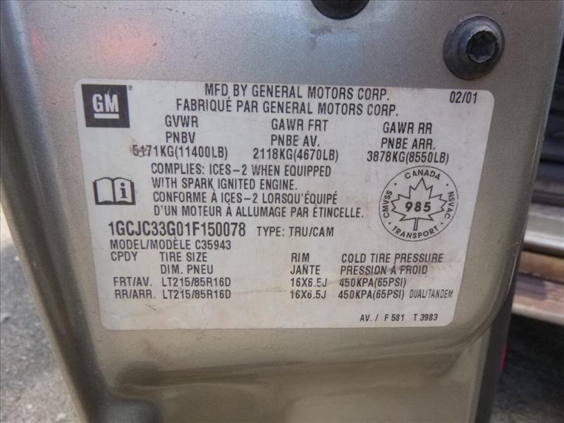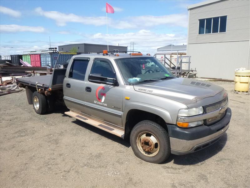 Chevy pick-up truck, mod. 3500LS, VIN 1GCJC33G01F150078 (2001), unit no. 50-03, 135000 Km, Vortec 8100, 4-door, 4x4, dual-rears, 10 ft. flat-deck (located at 166 Rue Maltais)