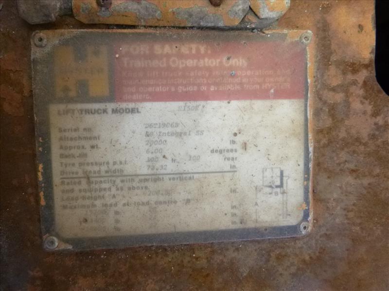 Hyster lift truck, mod. HI50R, ser. no. D6T1906B, 15700 lbs., 3100 hrs. (requies repair) (located at 164 Rue Strathcona)