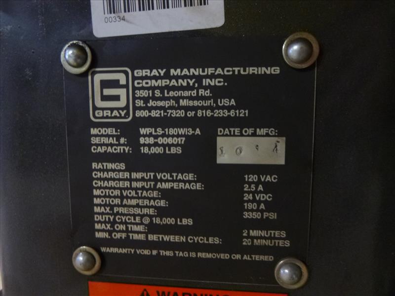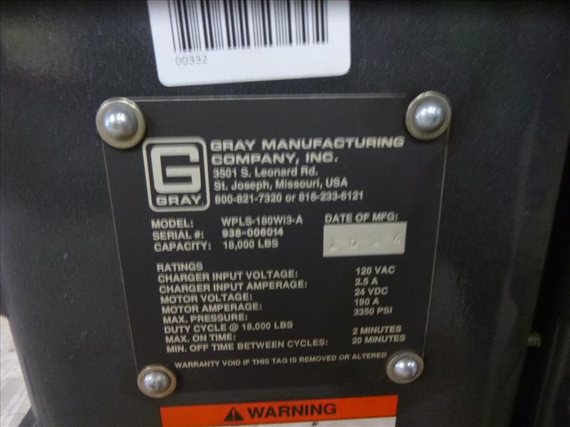 (2) Gray hydraulic lifts, mod. WPLS-180W13-A (2014), 18000 lbs. cap. ea., wireless (located at 164 Rue Strathcona)