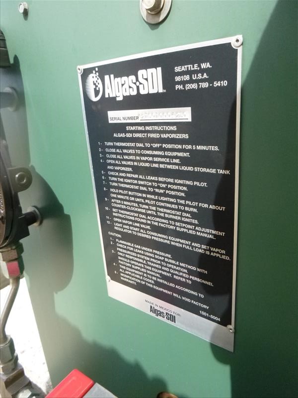 NordCotier propane fuel tank c/w ALGAS-SOL direct fired vaporizer, ser. no. A215010004230 (located at 164 Rue Strathcona)