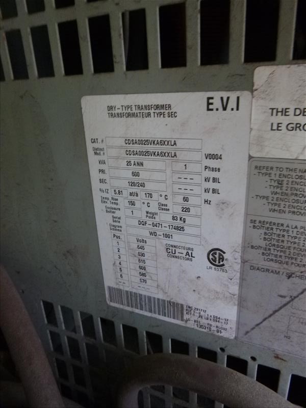 EVI 25 KVA transformer c/w enclosure, skid mounted (located at 166 Rue Maltais)