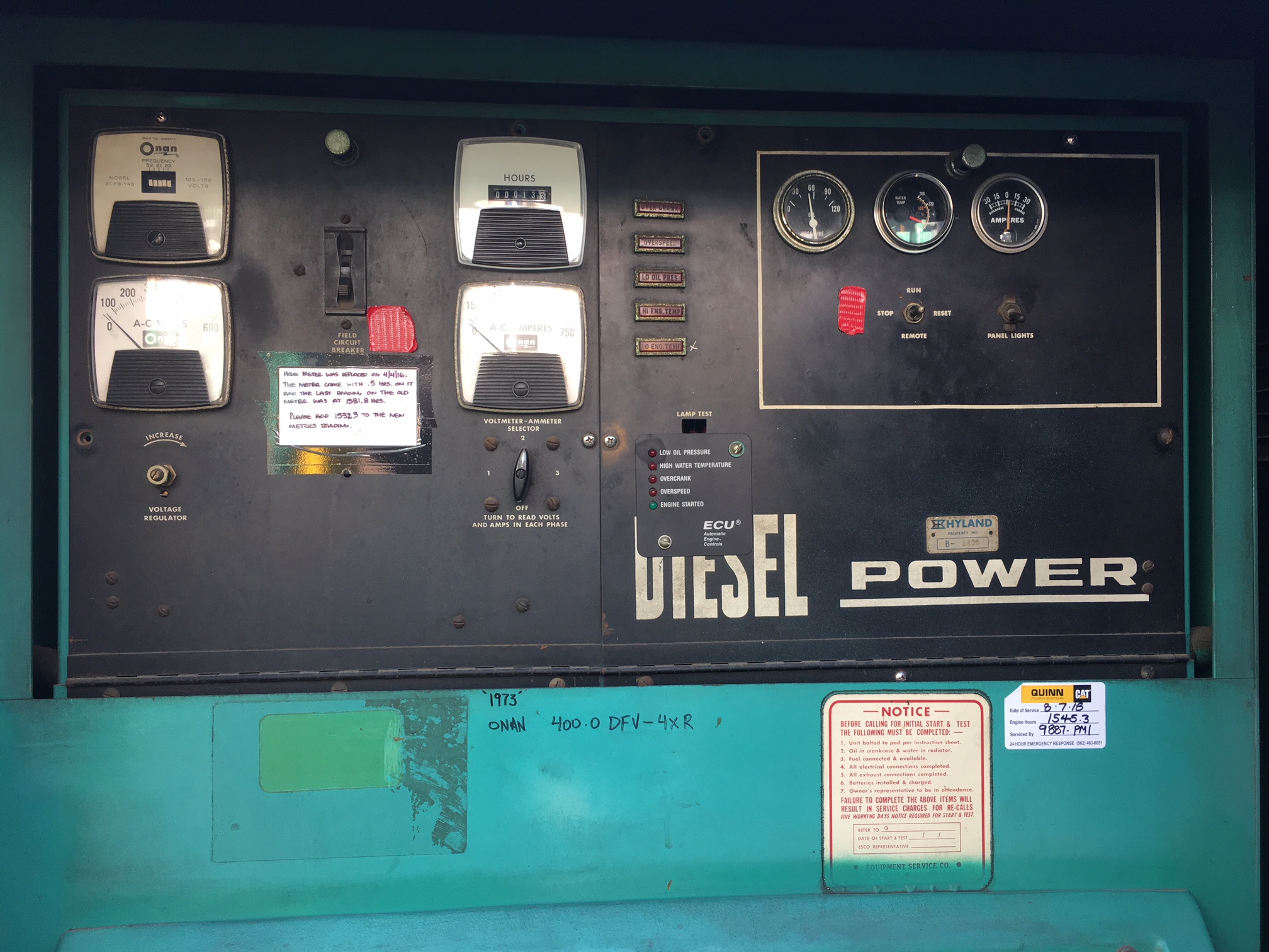 Cummins/Onan, backup diesel generator, 500KVA, 400KW, 480V, fully included (1500 hours). Available for immediate sale. Please contact our office for further info and to arrange inspection.
