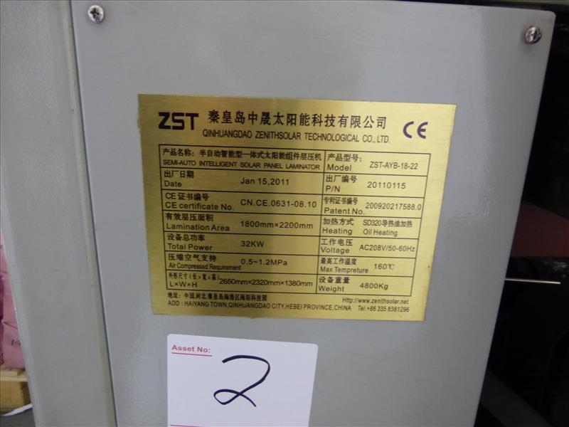 Semi-Auto Intelligent Solar Panel Laminator mod. ZST-AYB-18-22 cer. no. CN.CE.0631-08.10 (located at 5500 Rue Hochelaga)