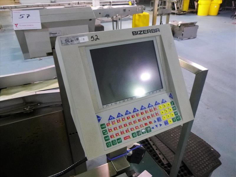 Bizerba in-line check-weigher system (SLAVE2) w/ Bizerba GS label printer, ser. no. 1960591 (damaged) and Bizerba AB controller, ser. no. 1960592