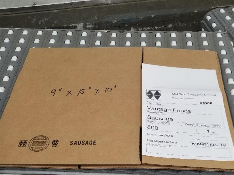 (4 pallets, 3950) A184454 - boxes, Midwest, \"Sausage\" print, 9x 15 x 10