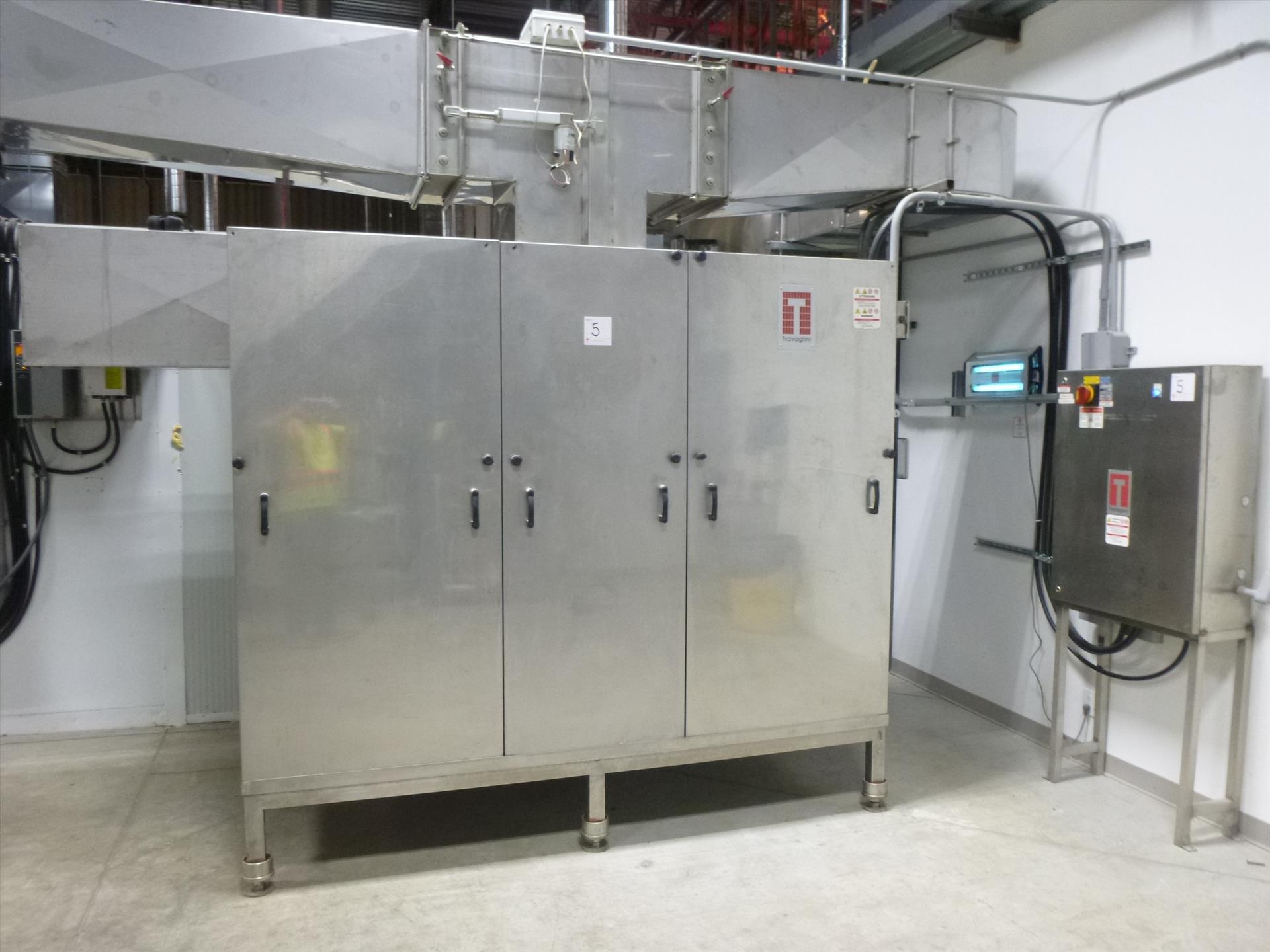 BULK LOT (CONSISTING OF LOTS 5A and 5B) Travaglini horizontal drying rooms for cured food products, etc. contained in a modular insulated enclosure, approx. exterior dimensions 28-1/2' wide x 40' long x 8-1/2' high, c/w: air handling units, humidification, cooling and heating systems, air duct systems, controllers, power and control cabinets, etc., including: (1) model WXJ010 system, w/ approx. room interior 9' wide x 38' long x 8' high, S/N: 0515001101, (2015) (1) model WAS800 system, w/ approx. room interior 18' wide x 38' long x 8' high, S/N: 0513001301, (2013) (WINNER WILL BE DETERMINED BASED ON SUM OF BIDS ON LOTS 5A and 5B VS BID ON BULK LOT 5 - SUBJECT TO CONFIRMATION)