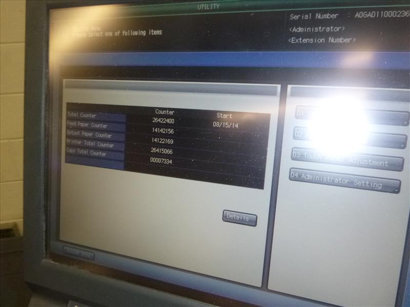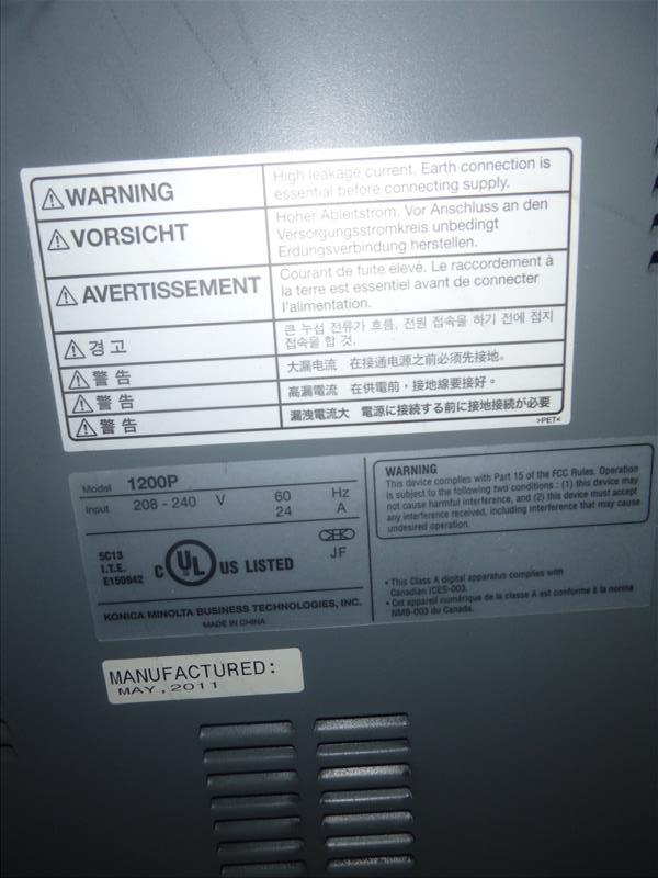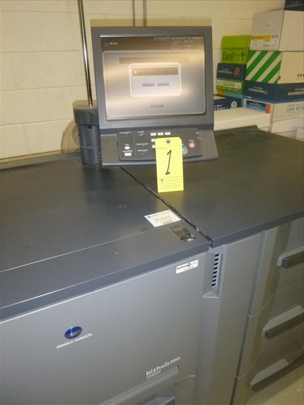 Konica Minolta Bizhub Pro 1200P Monochrome Digital Press 26,422,400 Impressions (2011) 1200 DPI, 12\" x 18\" Print Size, 120 PPM, w/GBC Multi Punch Model GP-501 S/N: A0N9W11000019, Model RU-506 Relay Unit, FD 503 Folding Unit Model FS-521 Finisher, Model SD 506 Saddle Stitcher,