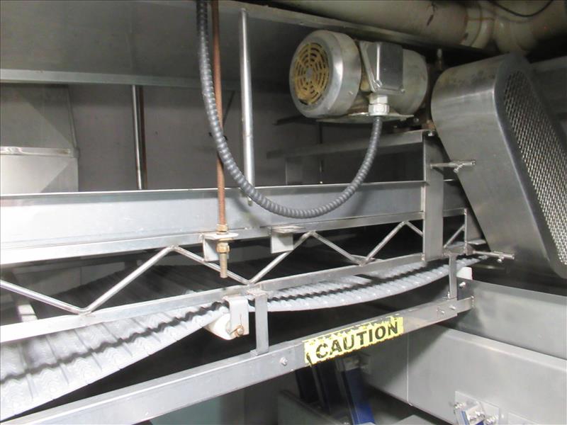 Flat belt conveyor, 22 in. wide x 40 ft. long, stainless steel frame [Batter-Fry Rm]