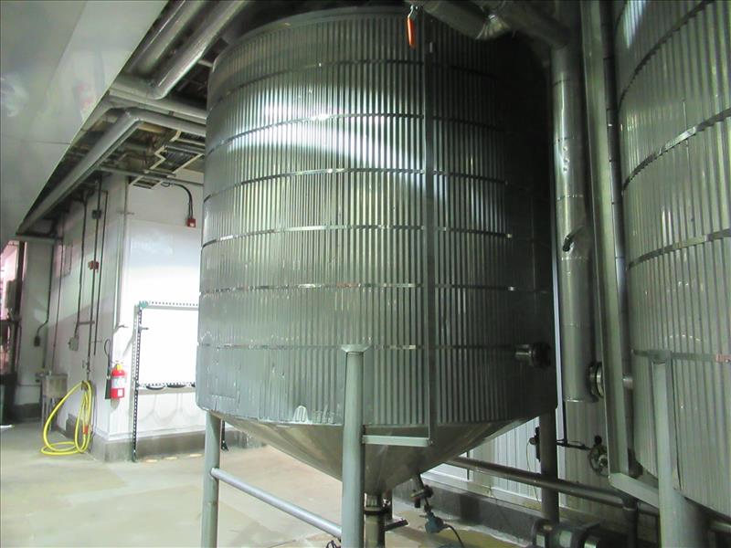 Oil holding tank, approx. 3000 gal., 8 ft. diameter x 12 ft. high including legs [Batter-Fry Rm]