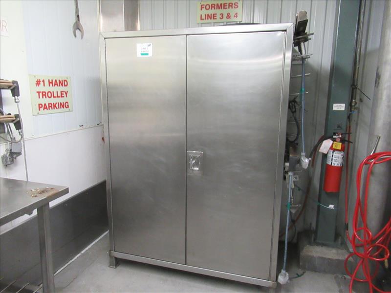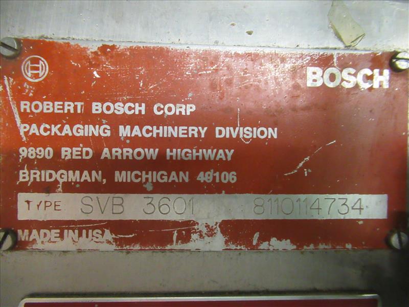 Bosch SVB 3601 FF&S bagger #3 includes Imaje Smart Date 5 laser encoder, and (4) assorted size filling tubes with stainless steel storage cabinet [Bagging Rm]