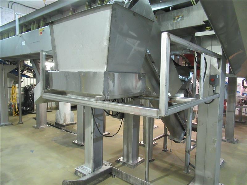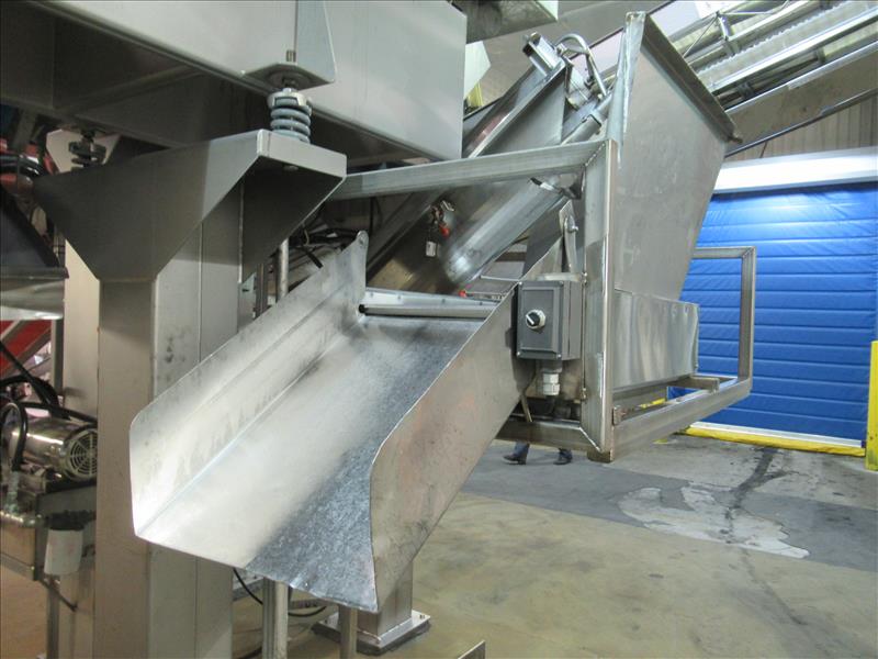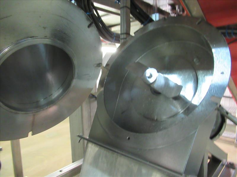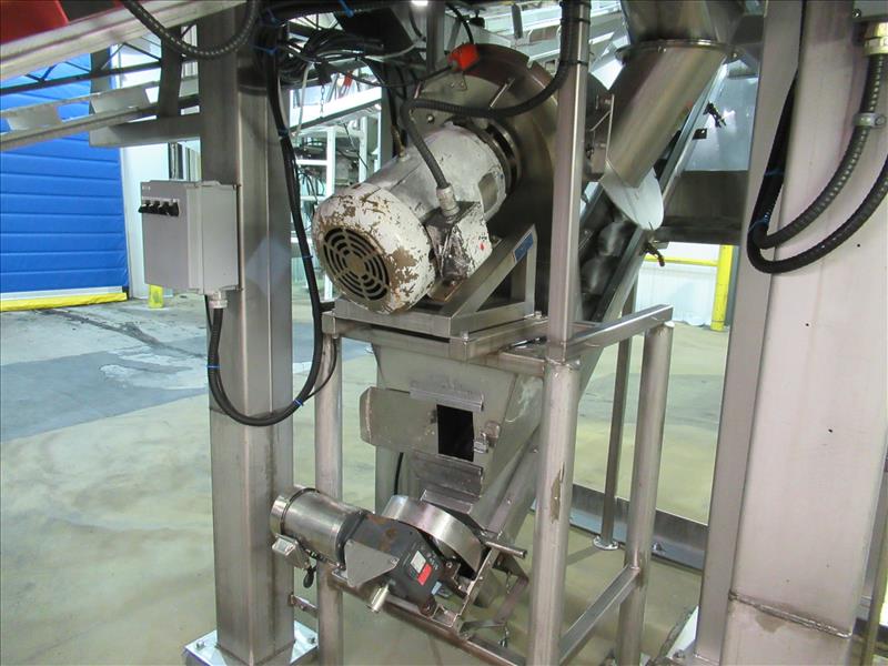 Corenco M12A disintegrator, 12 in. dia. Blade, 14 HP motor, includes 10 ft. long x 9.5 in. dia. Inclined auger discharge to stainless steel catch and bulk filling chute [Bagging Rm]