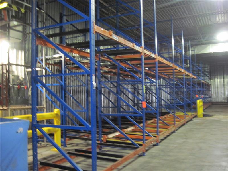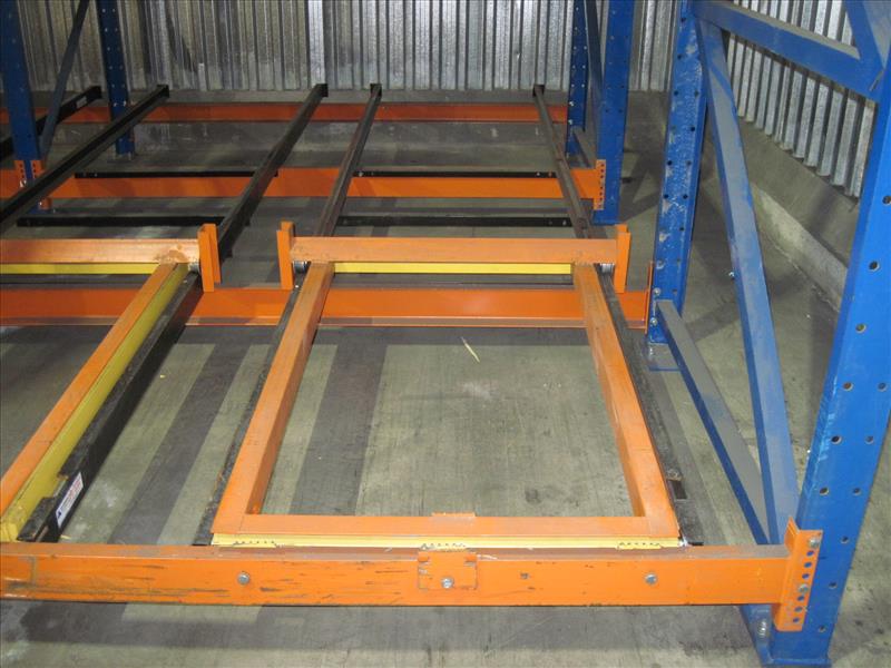Push back racking, 176 position 16 ft. high x 8 ft. wide x (3) position deep sections push back pallet racking, consisting of 3 seperate racking sections [Racking]