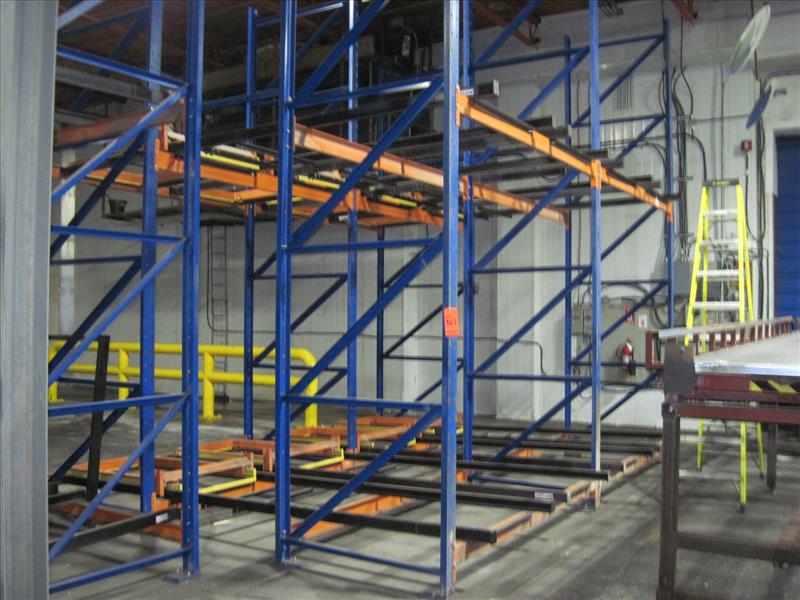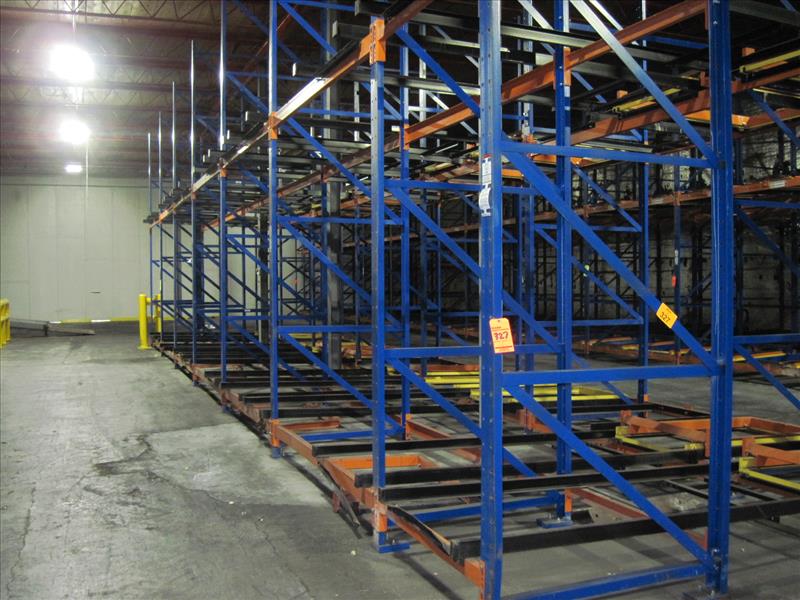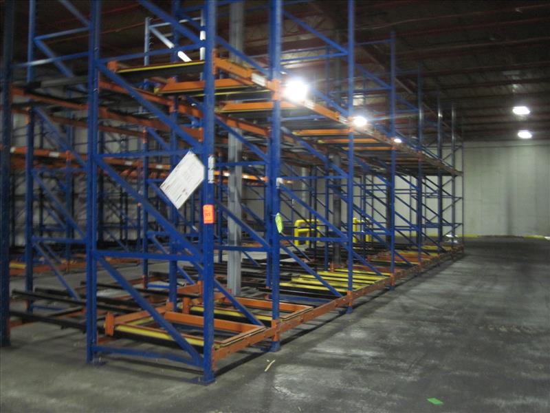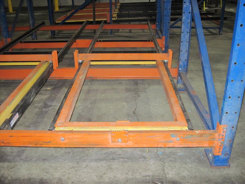Push back racking, 118 position 16 ft. high x 8 ft. wide x (2) and (3) position deep sections push back pallet racking, consisting of 3 sections [Racking]