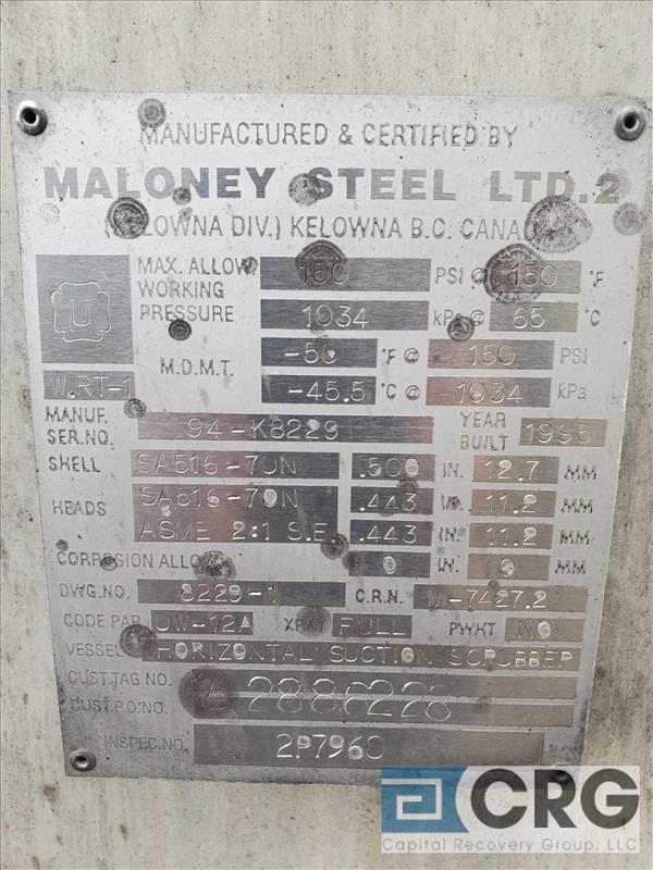 Maloney Steel scrubber, 8 ft. diameter x 10 ft. high x 12 ft. long approx. size, s/n 94-K8229 [Roof]