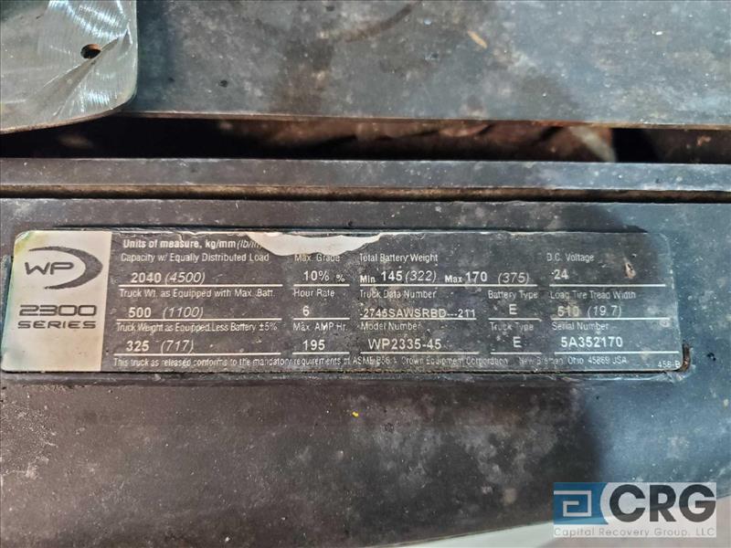 Crown WP2335-45 electric pallet jack, 4500 lb. capacity, s/n 5A352170 [Main Process]