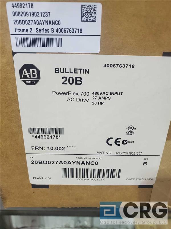 Allen Bradley Power Flex 700 AC Drive, 20 HP, 480 vol, 3 phase [Packaging Area]