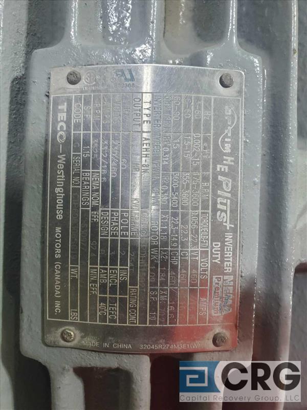 Lot of (4) asst motors including (2) 15 hp, (1) 25 hp, and (1) 50 hp [Packaging Area]