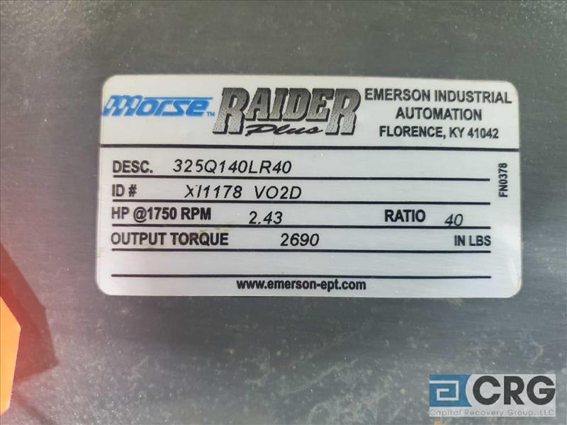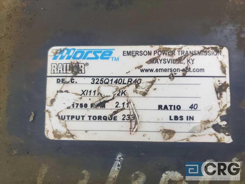 Lot of (4) Morse 325Q140LR40 gear drives, 40/1 ratio, 1750 rpm max input [Packaging Area]