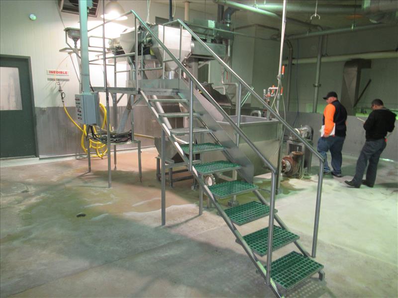 Inspection deck consisting of 6 ft. long x 24 in. wide belt type inspection table, 5 ft. long x 24 in. wide feed belt, stainless steel inspection deck with stairway, shared control panel [Bi Product ]