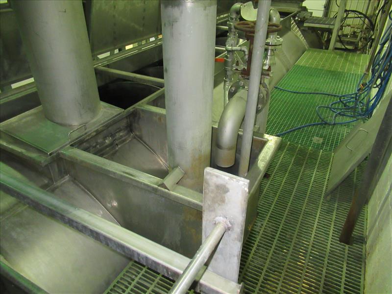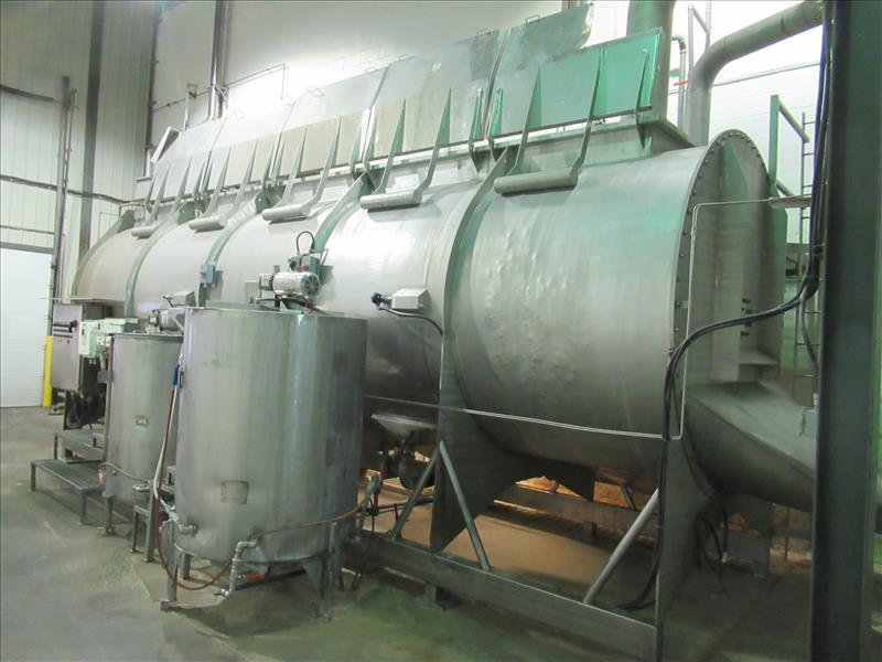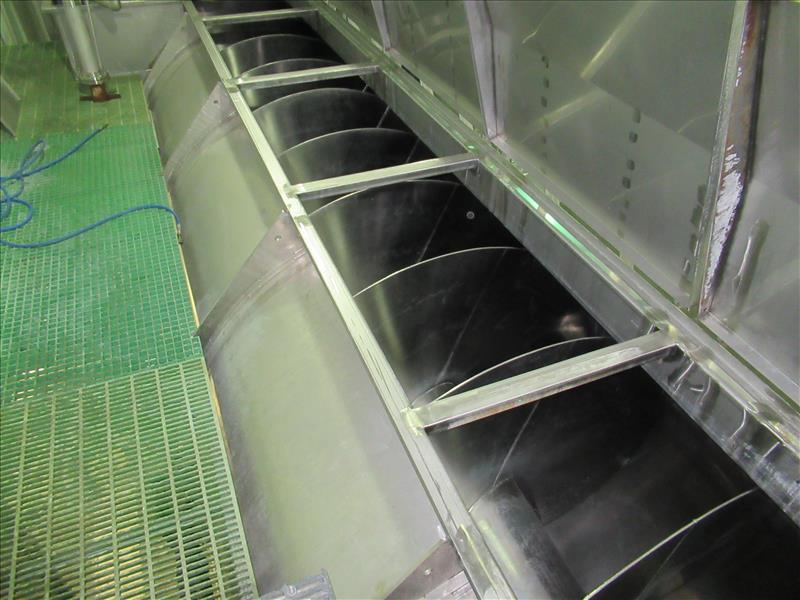 GEM Line pre-heat tank, approx. 8 ft. diameter x 26 ft. long x 12 ft. high, all stainless construction, internal auger, S.A.P.P. and cerelose additive tanks, VFD drives, inspection deck, and mounted infeed belt, s/n 6500499 [Main Process ]