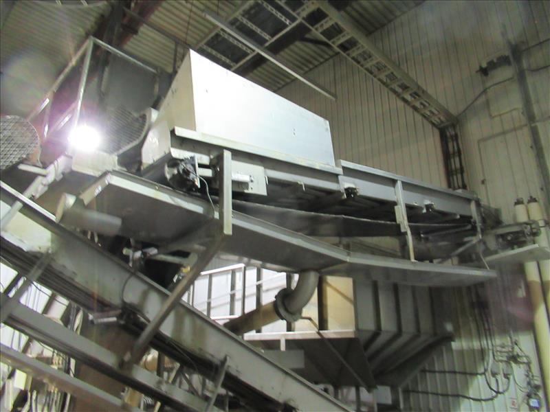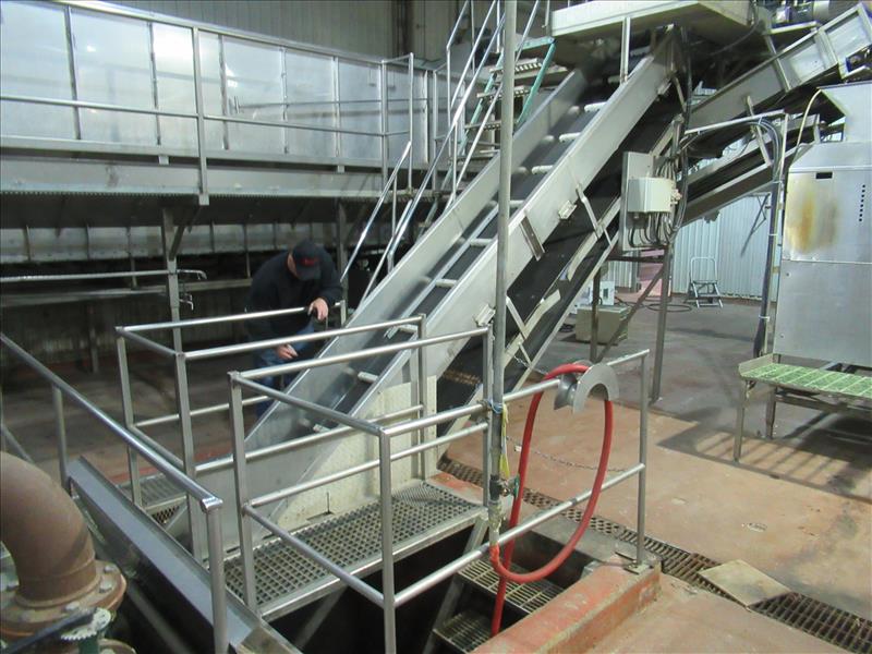 Incline conveyor, 24 in. wide x 14 ft. long, infeed to potato bin, rubber belt with plastic cleats [Main Process ]