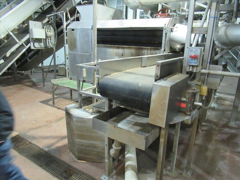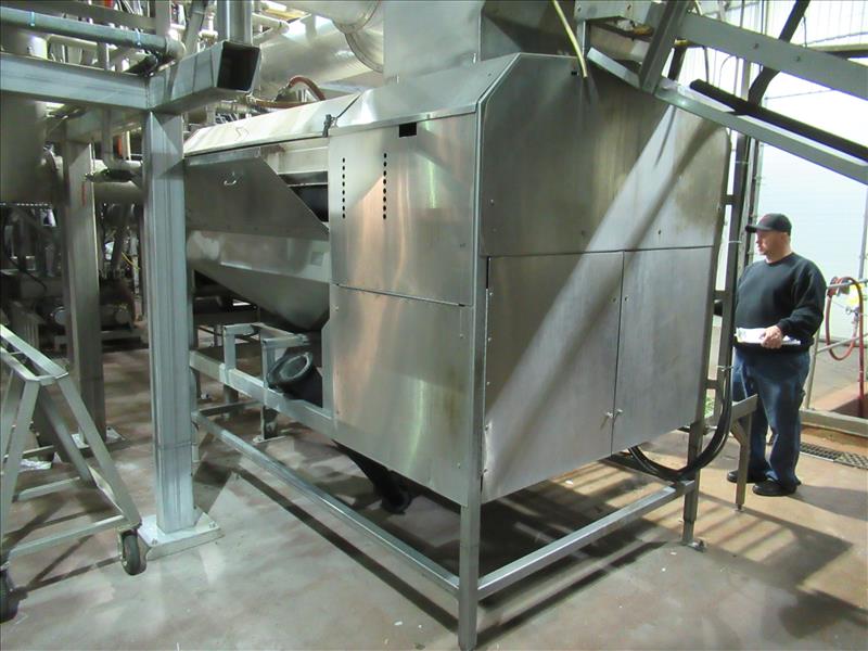 VanMark Warhorse Type double brush washer, 9 ft. long x 66 in. wide x 8 ft. high, U bed design, adjustable gate discharges, electric driven, with connecting discharge inspection belt, s/n 028157005100001 [Main Process ]