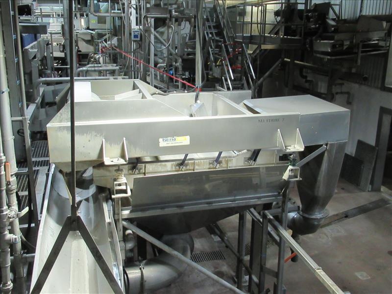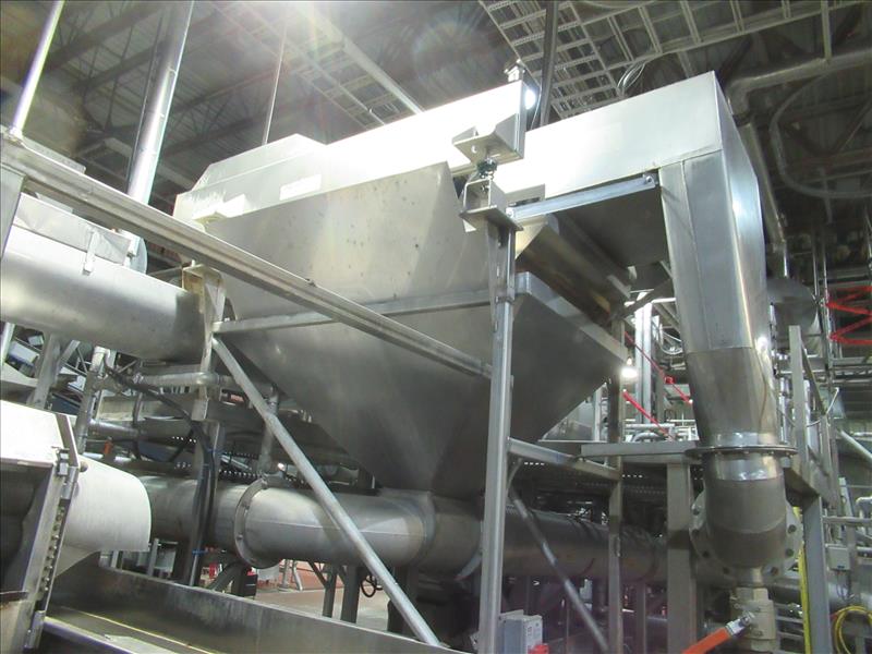 Key ISO-FLO 437527-1 sizing shaker, 36 in. wide x 7 ft. long, with ss collection hopper to pipework (pipework not include), and ss support framework, s/n 08-201387 [Main Process ]