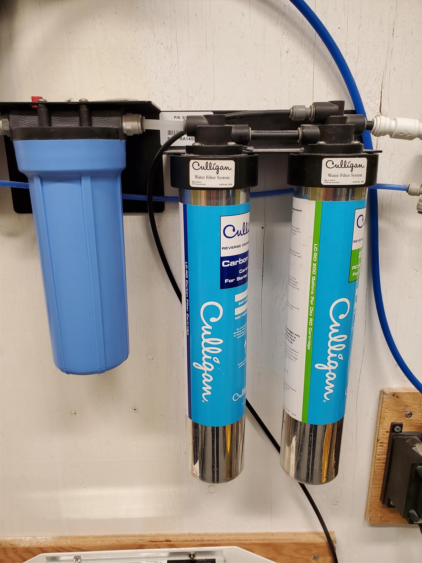 Water purification system w/ sterilight platinum unit w/ (2) Aquaflo Lite, model AFL90, 90 gallon capacity tanks