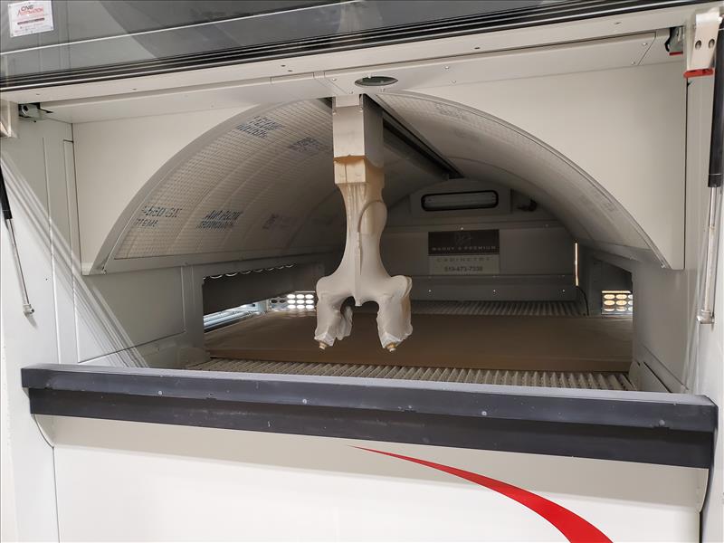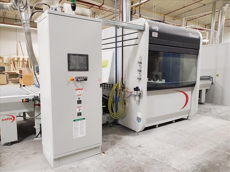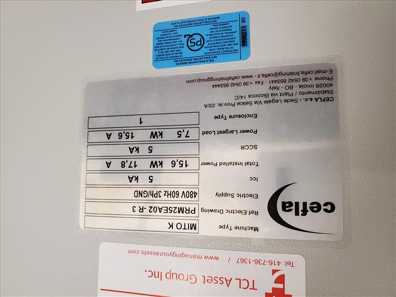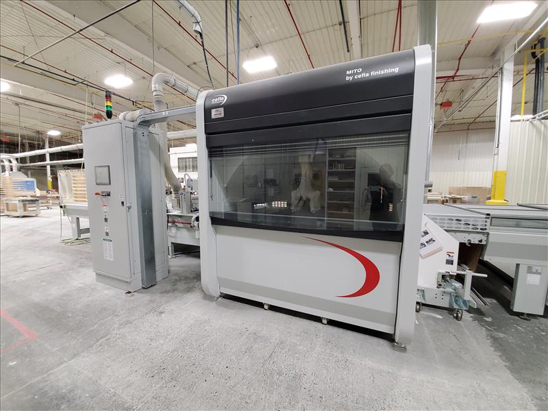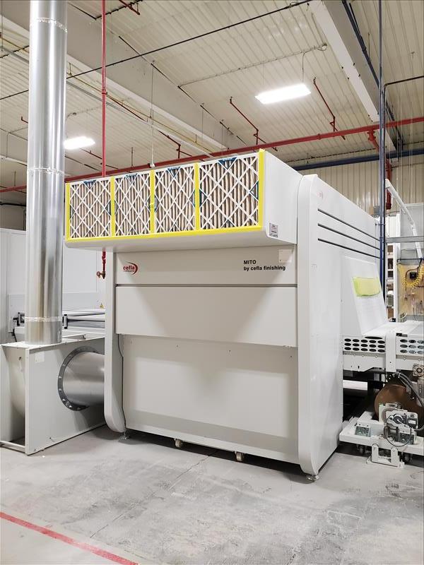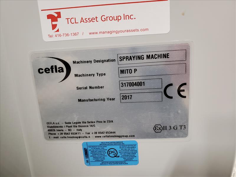 Cefla Reciprocating Spraying Machine, mod. Mito P, ser. no. 317004-001 c/w vacuum/paper coating conveyor system, Mito K control panel and air diffusion system w/ blower, w/MZ Aspiratori centrifugal fan, type RLQ560/4