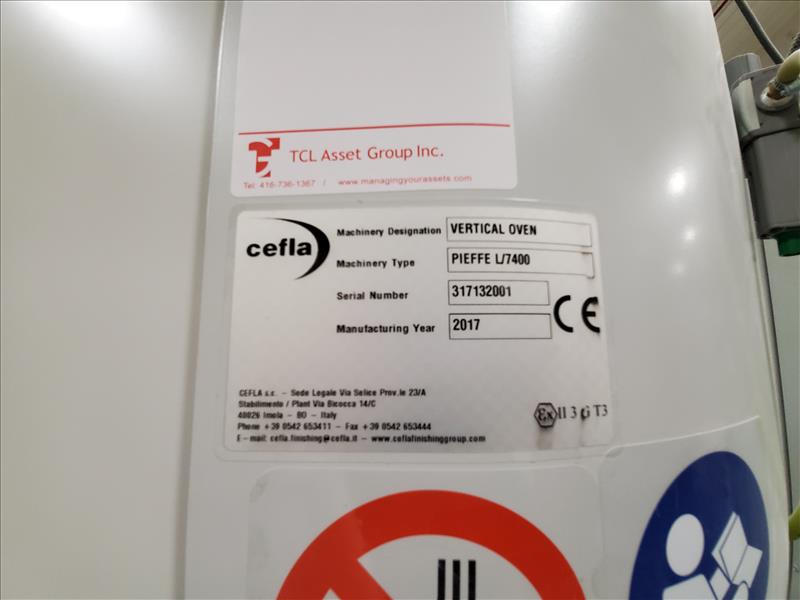 Cefla vertical oven, mod. PIEFFE L/7400, ser. no. 317132001 (2017) c/w PIEFFE control panel