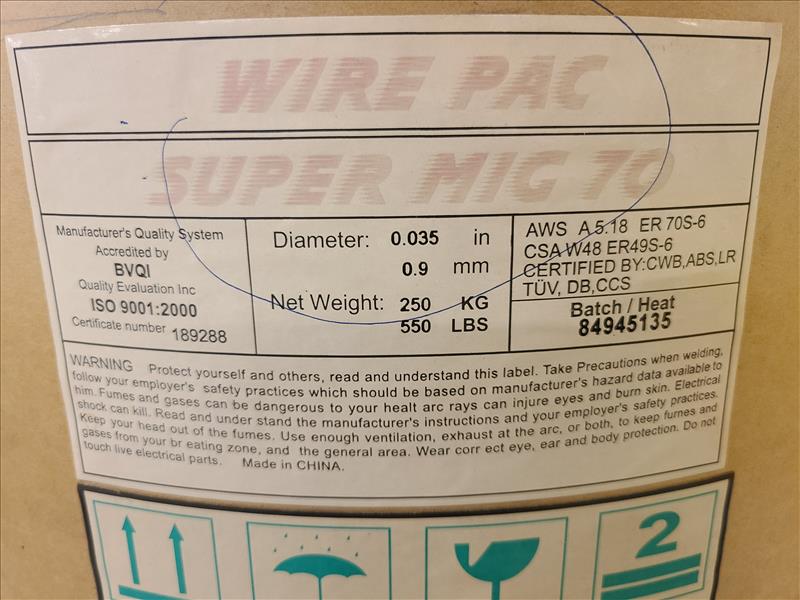 (4) WIREPAC SuperMIG70 Welding Wire Drums, 0.9 mm (Partial)