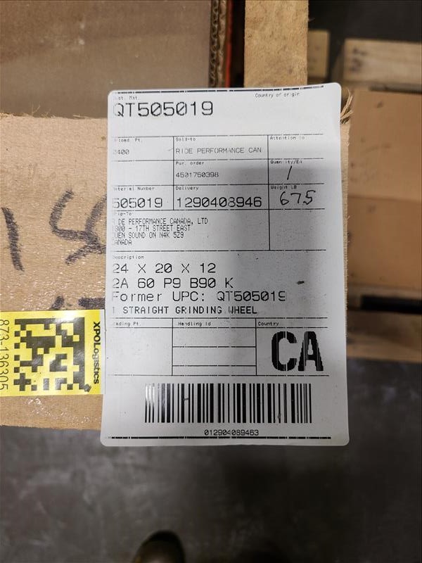 (1) TYROLIT Grinding Wheel, Straight 24x20x12