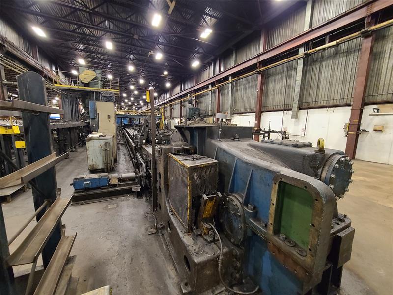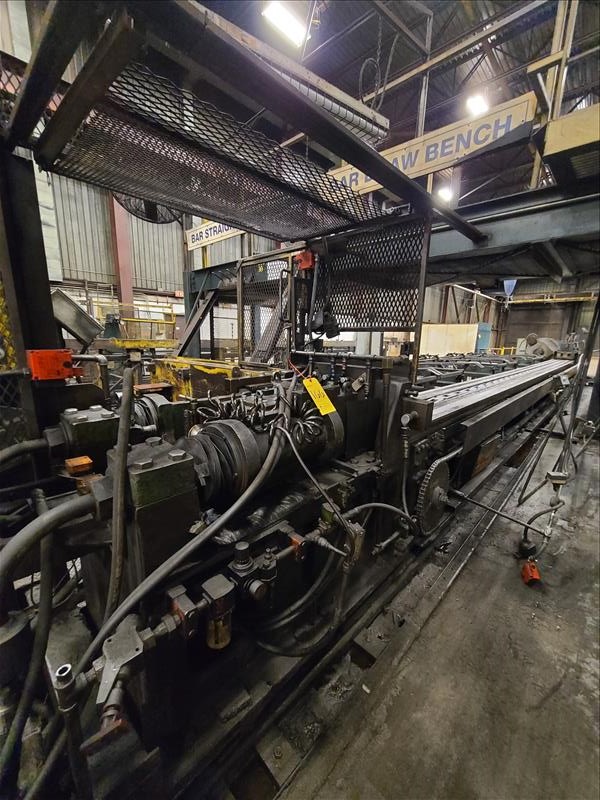 VAUGHN 50,000 lb. Single/Double Draw Bench, w/ 150 hp Motor / RELIANCE MaxPak III DC Drive, 37? Bench