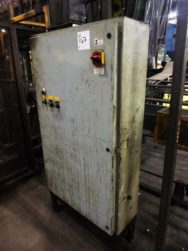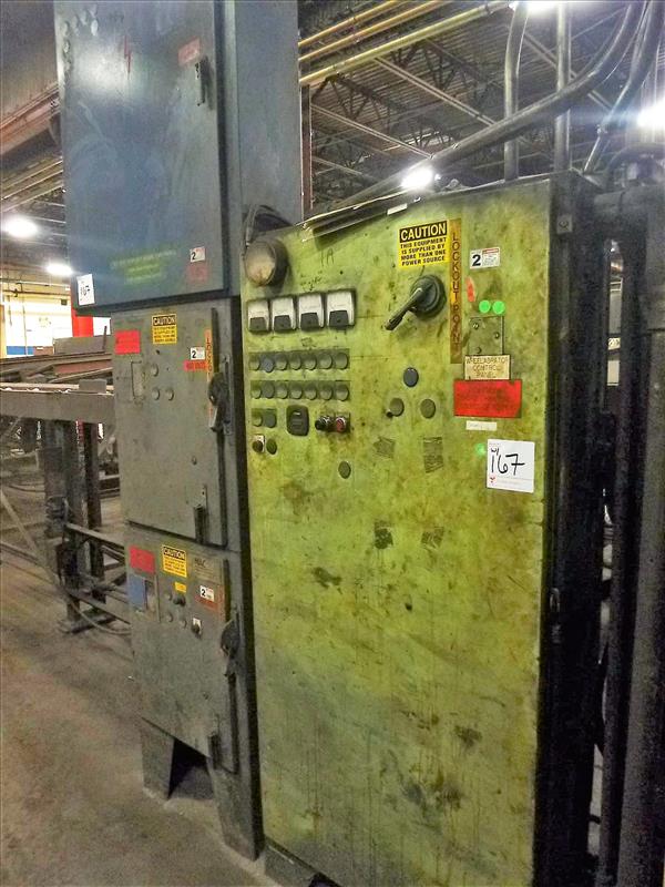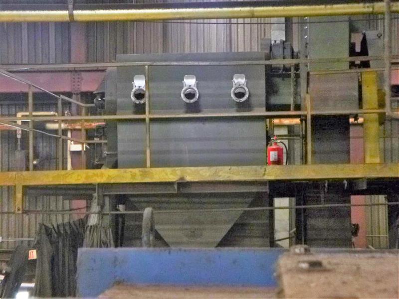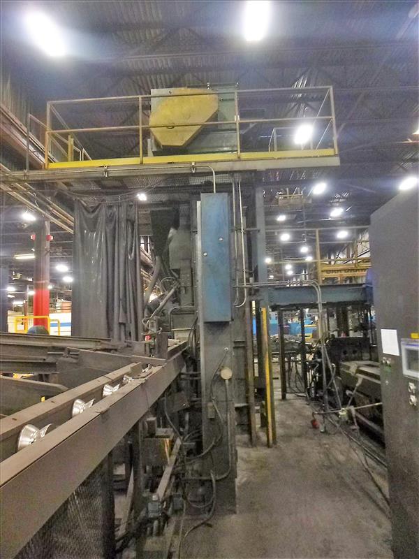 WHEELABRATOR 4W/A Bar Stock Shot Blast Machine, s/n A-121227, w/ (3) 25-RLM-195 30 hp Vanes, c/w Infeed/Outfeed Conveyor