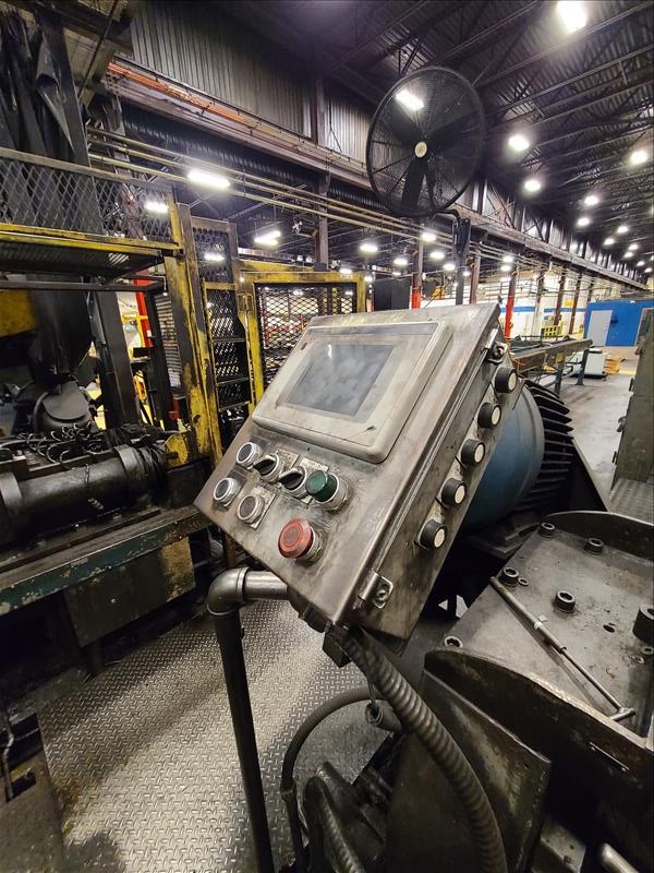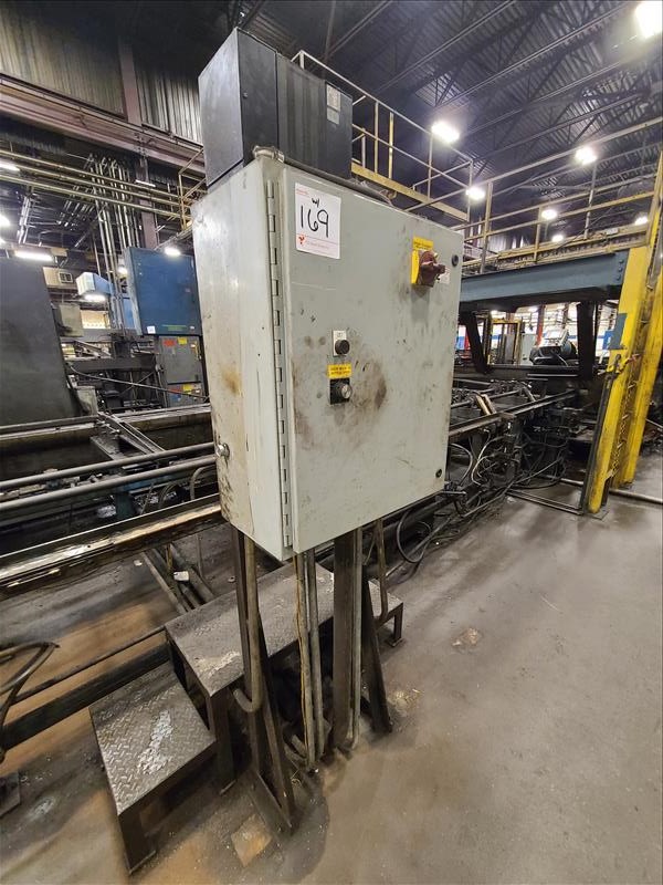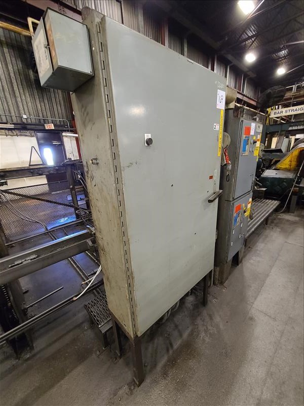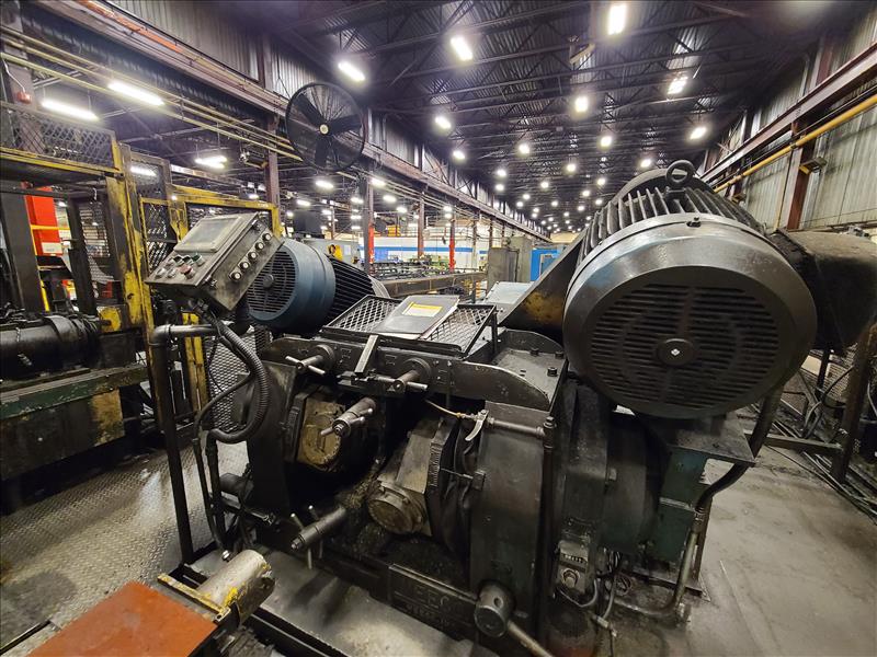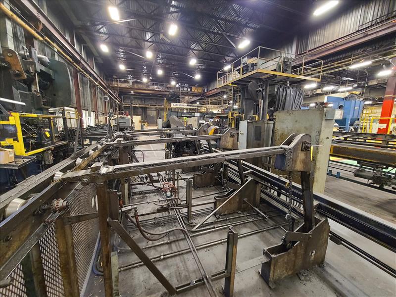MEECO HD1 2 Roll 2 Motor Bar Straightener, s/n J355, Rebuild AV8866, w/ Twin 30 hp Motors c/w Infeed/Outfeed Conveyor