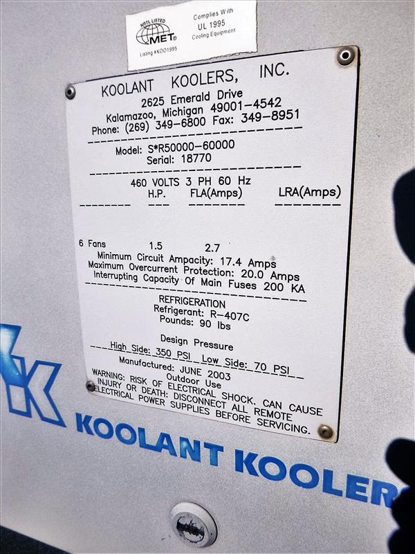 KOOLANT COOLERS SR50000-60000 Remote Condenser, s/n 18770, 6-Fan, R-407C