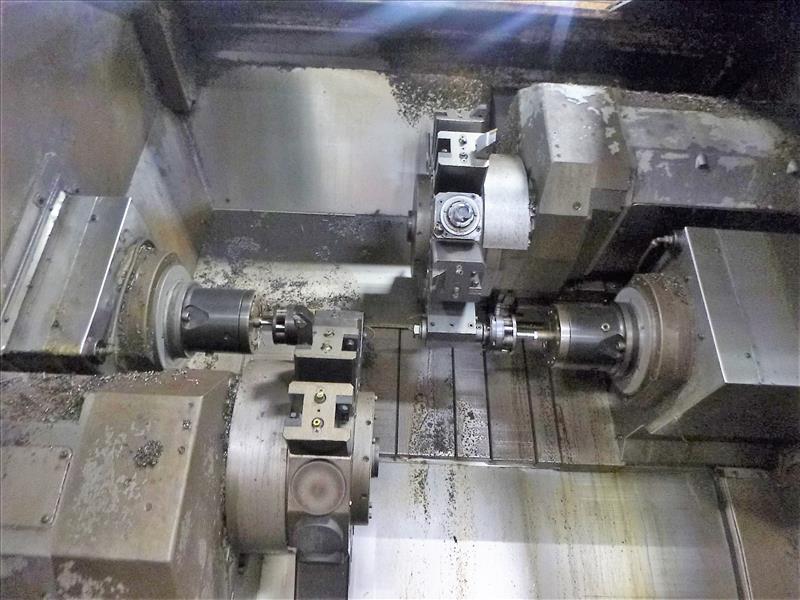 OKUMA LT15-M Twin Spl Turning Center, s/n 07030081 c/w LNS Quick Load Bar Feeder/UniLoader Outfeed, HENNIG Chip Conveyor & BERG PA-M1 Chiller