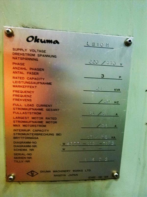 OKUMA LB10M Turning Center w/ Bar feed & Chip Conveyor, s/n 1672