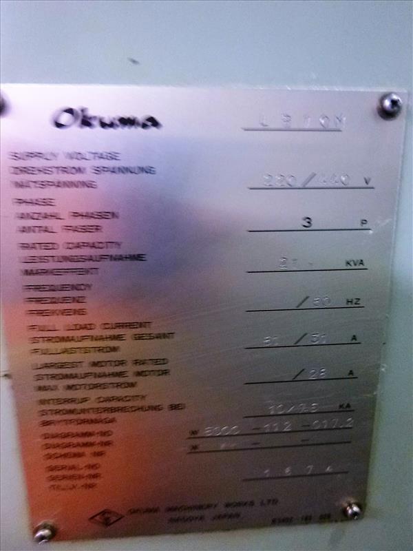 OKUMA LB10M Turning Center w/ Bar feed & Chip Conveyor, s/n 1674