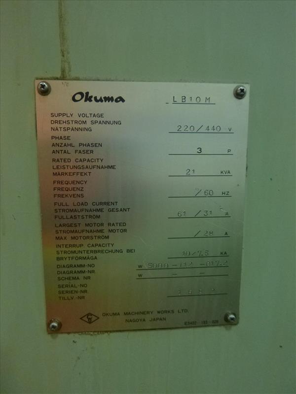 OKUMA LB10M Turning Center w/ Bar feed & Chip Conveyor, s/n 1682