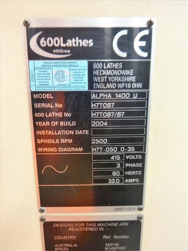 2004 HARRISON ALPHA 1400 CNC Lathe, s/n H7T087 c/w CPU & Attachments