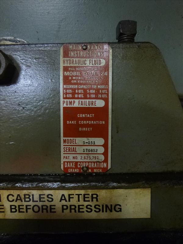 DAKE 5-151 150 Ton Hydraulic Shop Press, s/n 170852