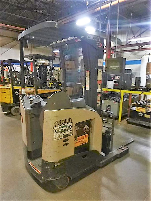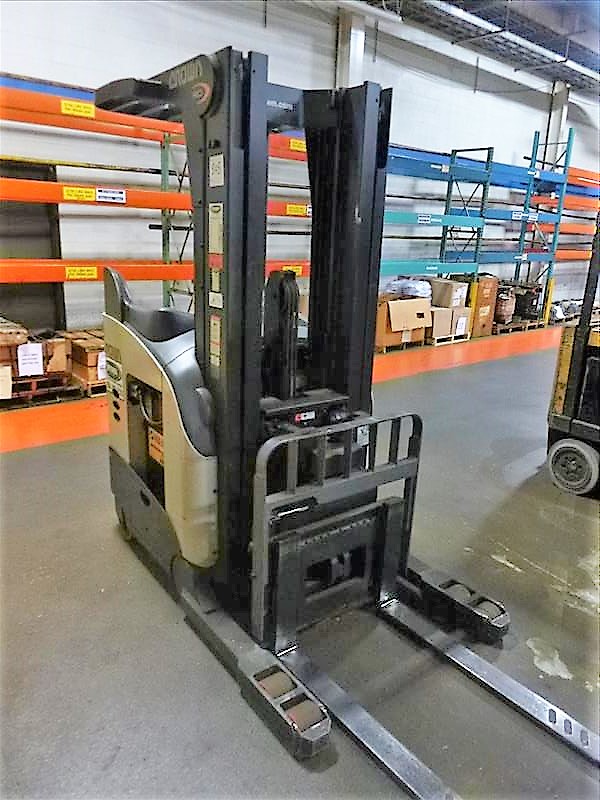 CROWN RM6025-30 Deep-Reach Fork Lift Truck, s/n 1A412985, 2500 lbs. cap., 2-Stage Mast, Meter Reads 3455 hrs., 36V Electric (Charger Sold Separately)