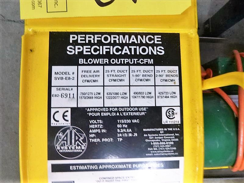 AIR SYSTEMS SVB-E8-2 Blower (For Confined Space Rescue)